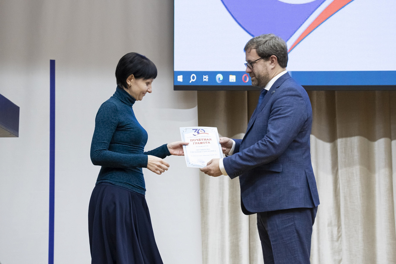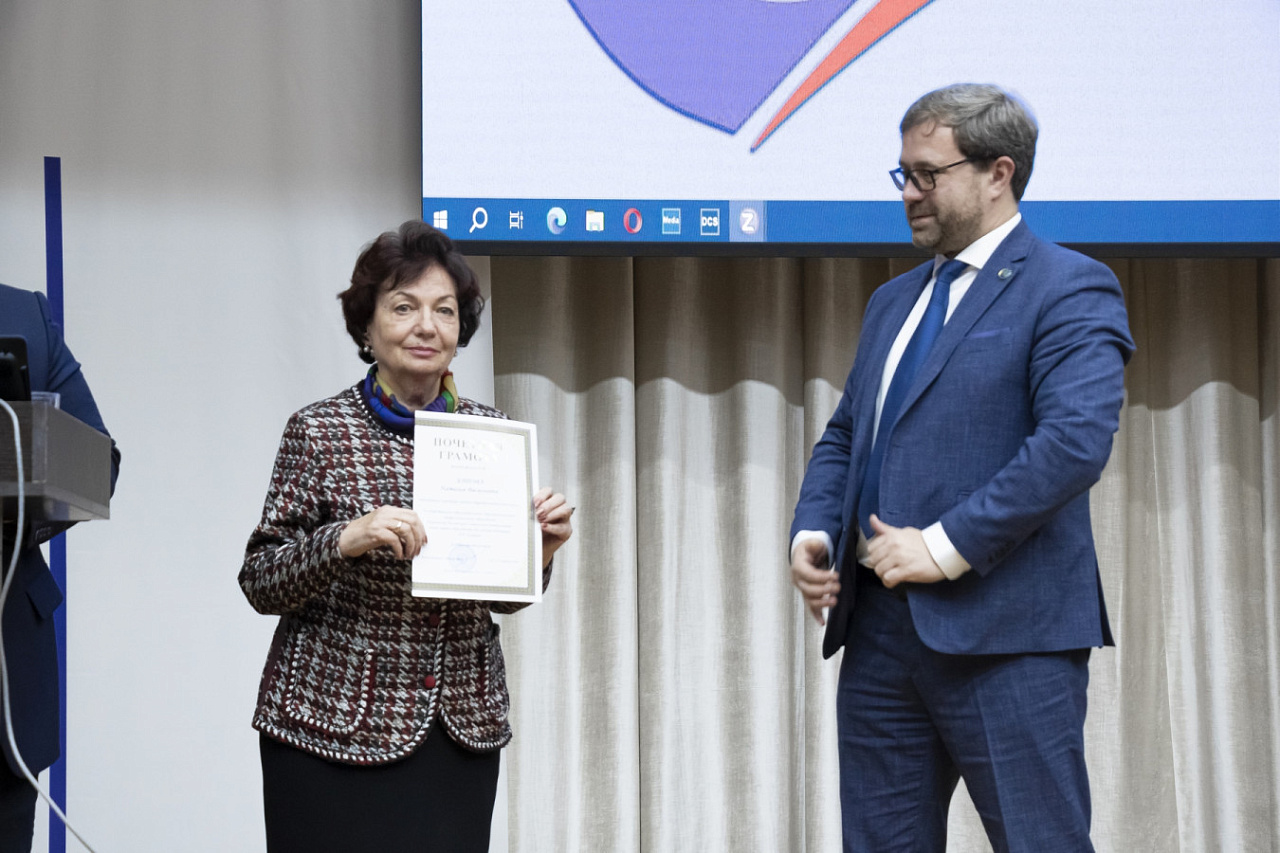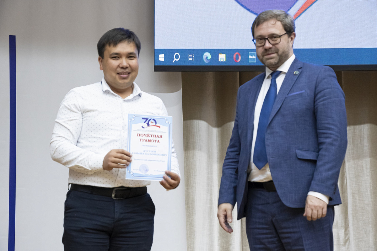 1 ноября на Ученом совете в торжественной обстановке и.о. ректора Денис Фомин-Нилов вручил награды сотрудникам КРСУ за многолетний добросовестный труд.