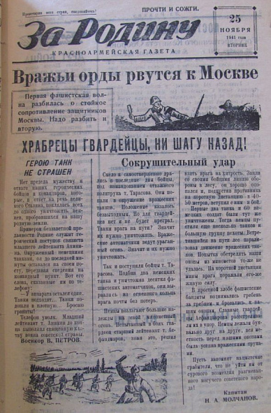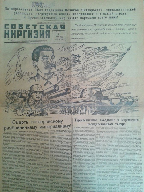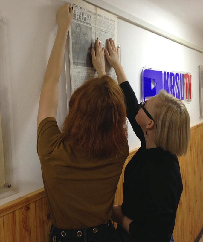 13 января в телевизионном центре Кыргызско-Российского Славянского университета имени первого Президента Российской Федерации Б.Н. Ельцина открылась выставка газет «Москва за нами. 1941 год», посвященная Дню российской печати. Основой выставки стали газеты, издававшиеся в период сражения за Москву, проходившего с сентября 1941 по апрель 1942 года и ставшего крушением гитлеровского плана «Барбаросса» по разгрому СССР за 12 недель. В выставочную экспозицию входят газета 316-й стрелковой дивизии «За Родину», «Красноармейская правда» – газета Западного фронта, «Вечерняя Москва» – газета Московского обкома ВКП (б) и Моссовета, газета «Советская Киргизия» – орган Центрального комитета, Фрунзенского обкома и горкома КП (б) и Верховного Совета Киргизской ССР. Они позволяют передать атмосферу суровых военных лет. В них можно прочитать сводки Совинформбюро, материалы о героизме воинов и партизан, трудовых подвигах рабочих и колхозников.