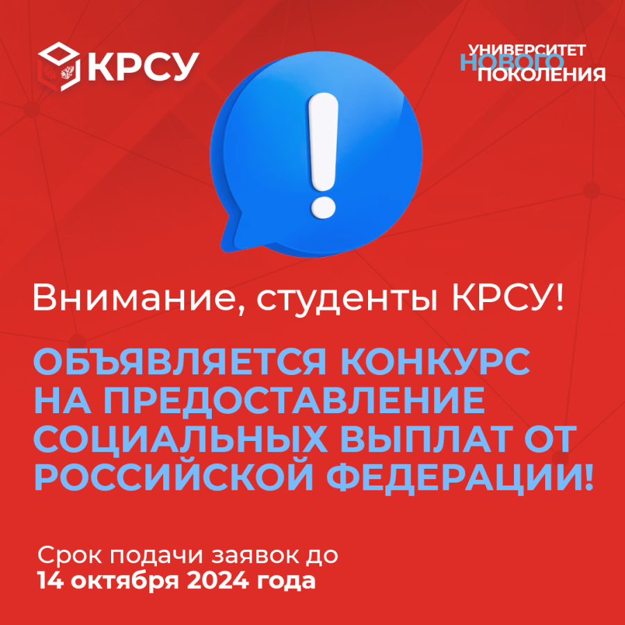 Регистрация по форме: https://forms.gle/uyr7qm2Z9Lq6i3eY6 Условия и порядок участия в конкурсе будут опубликованы на официальных ресурсах КРСУ. Ваши достижения и активное участие важны для нас!