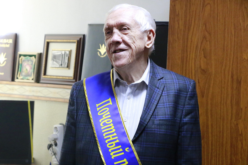 В торжественной обстановке ректор вуза, академик Владимир Нифадьев поздравил В. Янцена и вручил ему ленту с отличительным знаком.