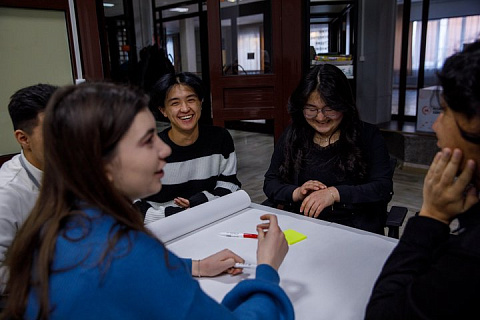 Студенты КРСУ встретились с Союзом кыргызстанских студентов «Манас». Состоялся семинар, на котором были обсуждены возможные совместные проекты в трёх областях: продвижении здорового образа жизни, повышении уровня знаний о культуре и традициях двух стран, просветительских мероприятий, встреч и форумов. Ребята из КРСУ и СФУ впервые работали в формате мозгового штурма в смешанных группах над новыми идеями сотрудничества. Сначала студенты определили главные проблемы, которые нужно решить по каждому из трёх направлений, записали свои решения, даже если они казались им забавными и сложными, а потом всей командой обсуждали предложения и создавали проект.