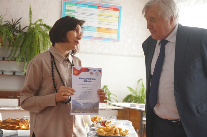 23 декабря делегация вуза вручила средней школе № 5 города Кара-Балта комплект стендов для кабинета русского языка и литературы, книги, имиджевую продукцию, а также произвела награждение учителей и учащихся, отличившихся в научно-просветительских мероприятиях, реализованных КРСУ в 2021 году. В церемонии от Университета приняли участие ректор Владимир Нифадьев, проректор Леонид Сумароков, заместитель директора Института русского языка Ольга Сумарокова.