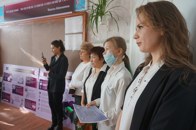 Призом для них стал комплект из девяти стендов для кабинета русского языка и литературы, разработанных заместителем директора Института русского языка КРСУ, д.и.н. Ольгой Сумароковой. В число стендов вошли: «Кыргызские поэты о русском языке», «Удивительные факты о русском языке», «День русского языка», «История русского языка в Кыргызстане», «Чингиз Торекулович Айтматов», «Девять причин учить русский язык», «Русский язык в мире: цифры и факты». Все они имеют своей целью формирование у подрастающего поколения мотивации к изучению русского языка.