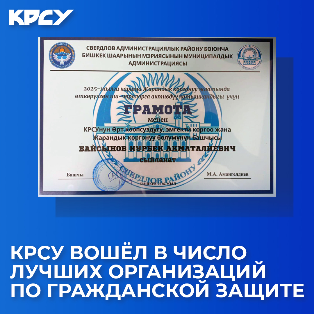 По итогам отчётного периода среди организаций района в лучшую сторону отмечена работа Кыргызско-Российского Славянского университета по организации и выполнению мероприятий гражданской защиты.