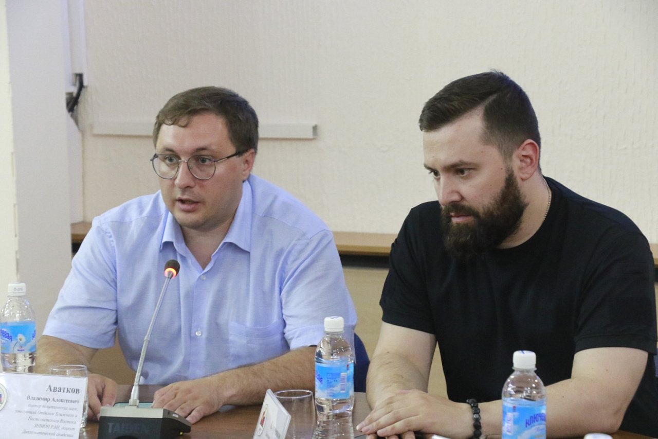 13 июня КРСУ посетила российская делегация ученых в составе доктора политических наук, заведующего Отделом Ближнего и Постсоветского Востока ИНИОН РАН, доцента Дипломатической академии МИД России Владимира Аваткова, директора Института стратегических исследований и прогнозов РУДН Дмитрия Егорченкова и научного сотрудника Отдела Ближнего и Постсоветского Востока ИНИОН РАН Алины Сбитневой.