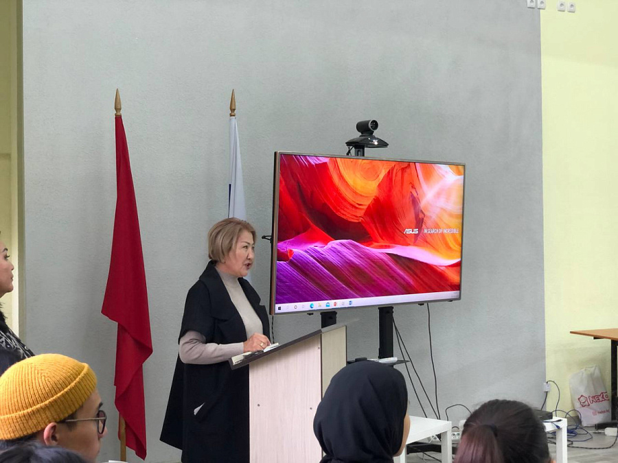 Гостей тепло приняли представители КРСУ – заведующая кафедрой ХПИ, доцент Максат Максутова, член Союза Художников КР, старший преподаватель Наталья Копелович, зам. декана ФАДиС по учебной работе, доцент Гульмира Шабикова.