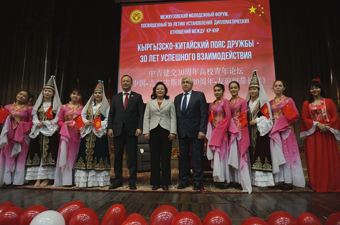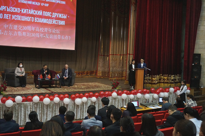 22 декабря в Кыргызско-Российском Славянском университете состоялся межвузовский молодежный форум «Кыргызско-китайский пояс дружбы – 30 лет успешного взаимодействия», посвященный 30-летию установления дипломатических отношений между Кыргызской Республикой и Китайской Народной Республикой.