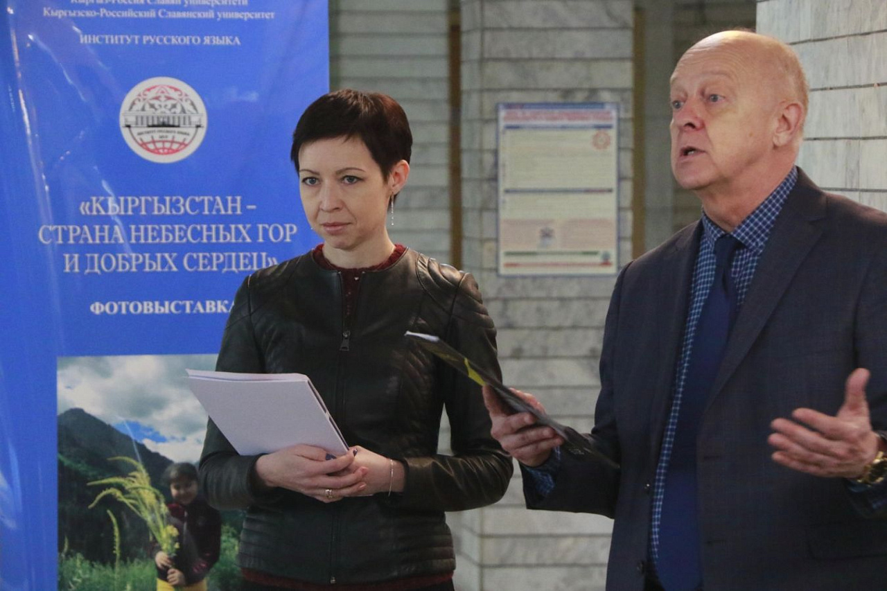 19 февраля в фойе главного корпуса Кыргызско-Российского Славянского университета им. первого Президента Российской Федерации Б.Н. Ельцина состоялось открытие фотовыставки «Кыргызстан – страна небесных гор и добрых сердец». Ей предшествовал объявленный Институтом русского языка КРСУ 1 февраля текущего года фотоконкурс для иностранных граждан, когда-либо посетивших Кыргызстан и запечатлевших на фотокамеру его пейзажи, достопримечательности городов, красоту его культурного наследия, изображения сельских и городских жителей, а также межчеловеческих отношений.