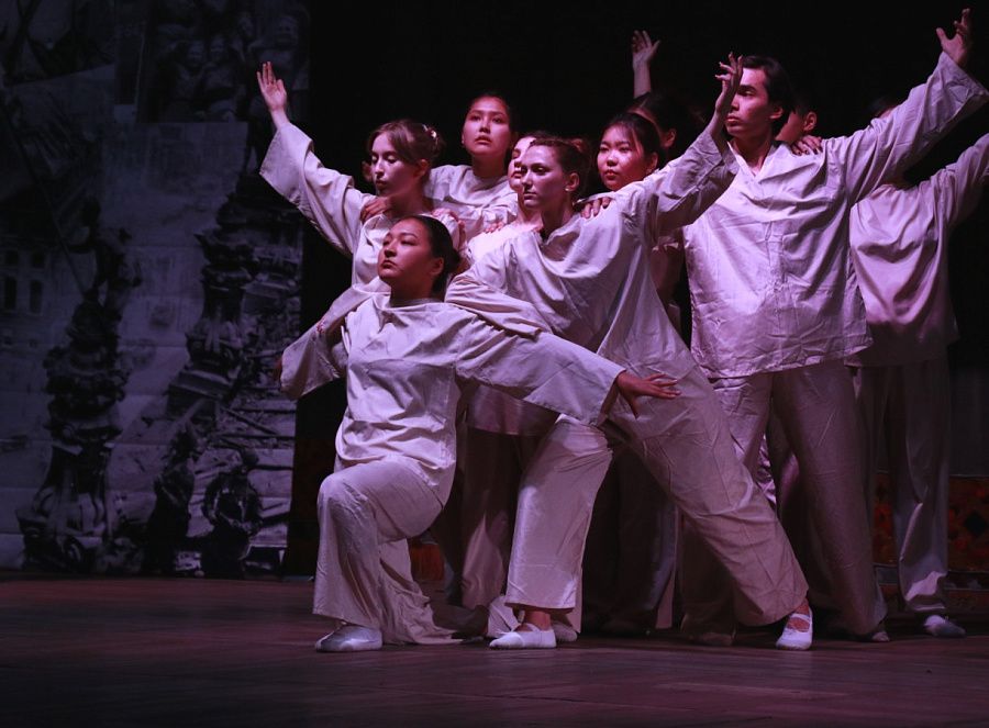 Перед многочисленными зрителями выступили руководители и студенты-участники творческих студий Молодежного центра культуры и творчества КРСУ. Они исполнили хореографические номера, песни, прочитали стихотворения.