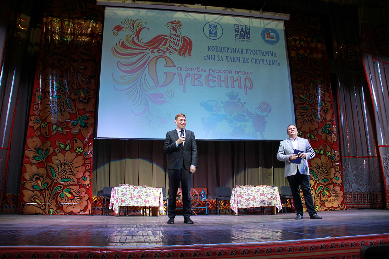 В большом актовом зале Кыргызско-Российского Славянского университета состоялся концерт ансамбля русской песни «Сувенир» под руководством заслуженного артиста Кыргызской Республики, руководителя вокальной студии Молодежного центра культуры и творчества КРСУ Владимира Тулина и отличника культуры КР Людмилы Чунтоновой.
