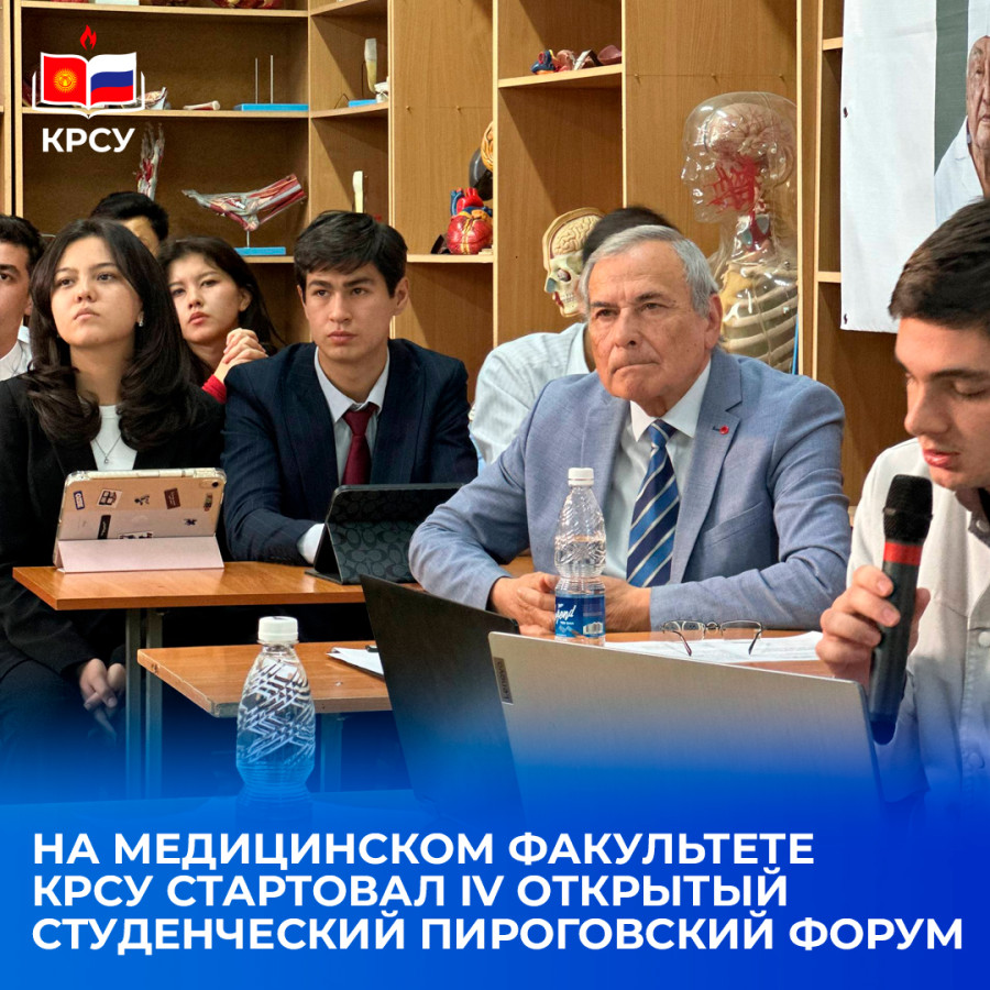 На медицинском факультете Кыргызско-Российского Славянского университета открылся IV Открытый студенческий Пироговский форум, посвящённый памяти хирургов — Героев Кыргызстана академика М.М. Мамакеева и профессора Э.Х. Акрамова. Мероприятие организовано кафедрой анатомии, топографической анатомии и оперативной хирургии КРСУ при участии преподавателей и приглашённых экспертов из ведущих медицинских вузов Кыргызстана, России и Узбекистана.
