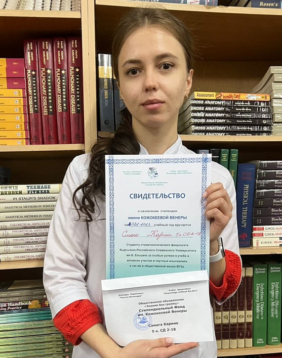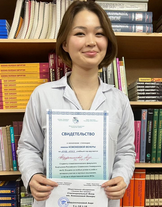 Не случайно общественная организация «Знания без границ» в 2012 году создала Стипендиальный фонд ее имени, целью которого является поощрение лучших студентов-стоматологов, обучающихся в Кыргызской Государственной Медицинской Академии и Кыргызско-Российском Славянском университете, показавших особые успехи в учебе, НИРС, общественной жизни своих вузов. За последнее время уже более 100 студентов получили именную стипендию, которая равна 1000 сомов в месяц и обычно выплачивается по итогам семестра, составляя в целом 5000 сомов.