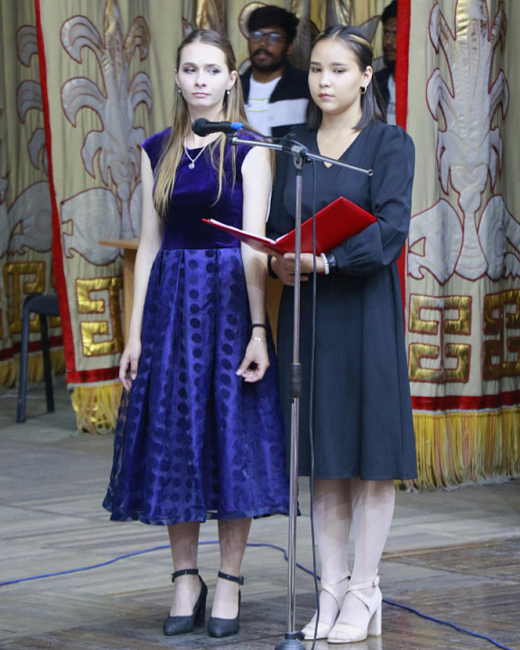 Под поздравления и напутствия проректора по международным связям Л. Сыдыковой открылась торжественная часть мероприятия. Ее поддержала декан медфакультета Р. Караева, которая зачитала приказ и под овации ребятам были вручены дипломы. Приятно, что 4 студента завершили свое обучение с отличными результатами. Так, Виктор Рангснамей, Фархин Аяз, Сада Шивам Аджитх Кумар и Гангула Бхавьянджали получили аттестаты особого образца!