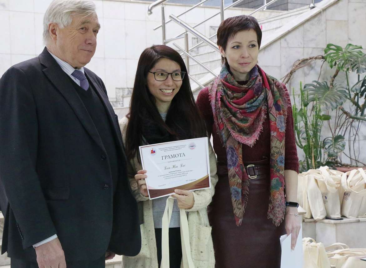 Все без исключения участники показали высокий уровень языковой подготовки. Лучшими из них в номинации «Русский язык как иностранный» стали гражданин Республики Корея Ли Джошуа (I место), гражданка Гонконга, слушательница курсов русского языка как иностранного КРСУ Лам Хиу Лай (II место) и гражданка КНР Лианлиан Чжан (III место). Следующим образом распределились призовые места в номинации «Русский язык как неродной»: I место заняла Нурайым Сатиева, II – Мунира Шарафудинова, III – Самат Наркеев.