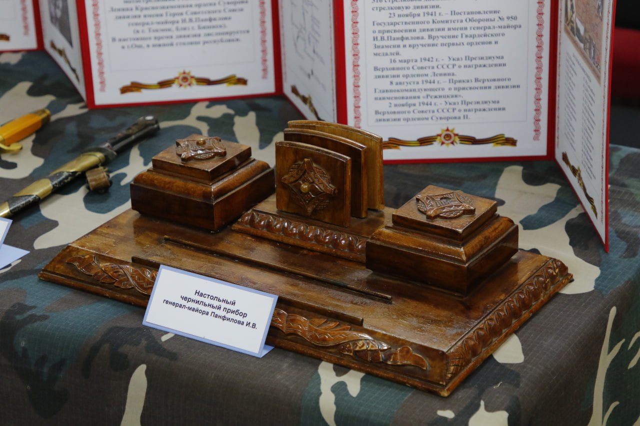 Одновременно открылась выставка «Кыргызстан в Великой Отечественной. Уроки самоотверженности и добра», где были представлены экспонаты из музея Панфиловской дивизии, включая личные вещи генерала Панфилова. Выставка стала живым напоминанием о вкладе кыргызстанцев в Победу и о том, как важно сохранять историческую правду.