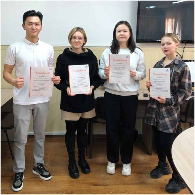От КРСУ были заявлены 4 студента второго курса: Кадырова Баяна, Нургалеева Полина, Пинских Алина – студентки факультета архитектуры, дизайна и строительства и Шамшиев Альварис – студент медицинского факультета.