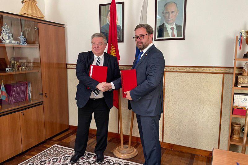 После панельной дискуссии состоялась церемония подписания договора о научном и образовательном сотрудничестве. Ректор СПбПУ Андрей Рудской и и.о. ректора КРСУ Денис Фомин-Нилов, подписывая совместный документ, договорились что будут развивать научное и образовательное сотрудничество в таких областях, как техническая физика, электроника, механика, возобновляемая энергетика, транспортные системы, строительство, цифровой инжиниринг.