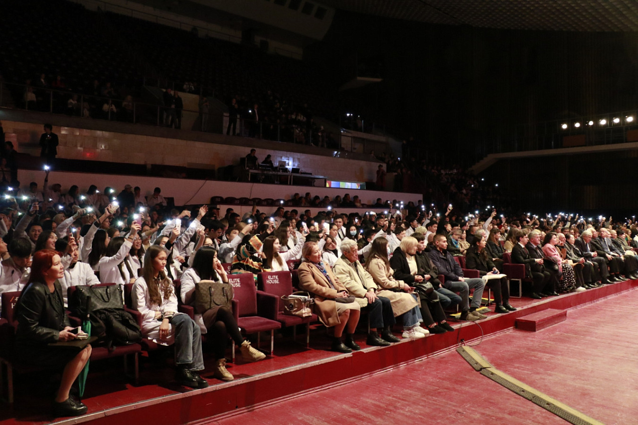 Ярким событием вечера стало видеопоздравление-напутствие первокурсникам от Героя Социалистического Труда, лауреата Государственной премии СССР, доктора географических наук, профессора, академика Российской академии наук, мастера спорта международного класса, неоднократного чемпиона СССР по альпинизму Михаила Чоккаевича Залиханова: