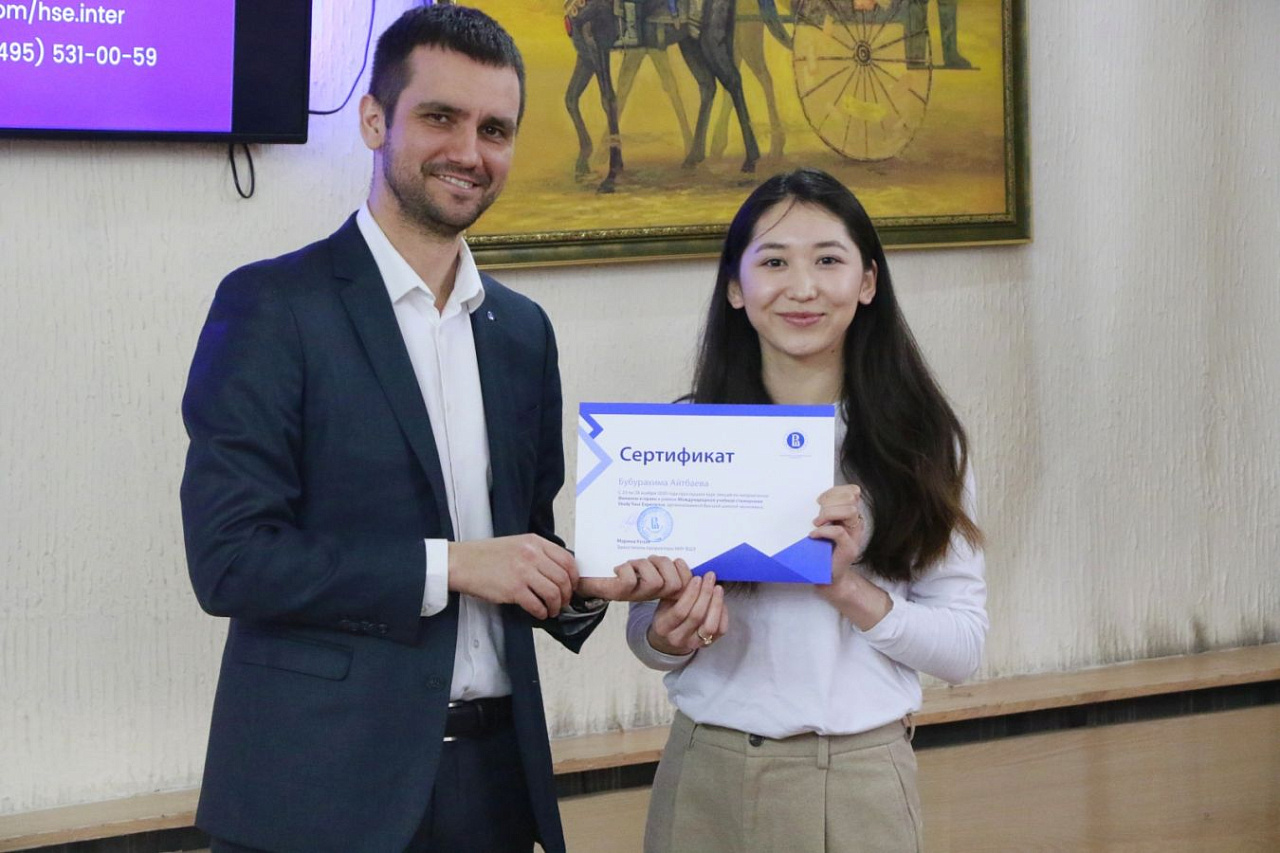 Затем в конференц-зале университета прошло вручение сертификатов нашим студентам-участникам учебной стажировки НИУ ВШЭ «Study Tour Experience» осеннего и зимнего сезона. Помимо этого студенты, заинтересованные в продолжении обучения в НИУ ВШЭ, получили исчерпывающую информацию от его представителей о тонкостях поступления и учебном процессе в магистратуре.
