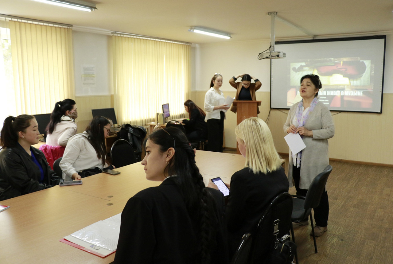 18 мая в рамках Фестиваля русского языка магистранты 1 курса кафедры русского языка КРСУ провели музыкально-литературную композицию на тему «Русский язык живет в музыке» с участием студентов 2 курса.