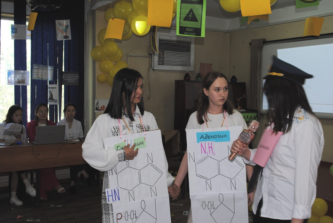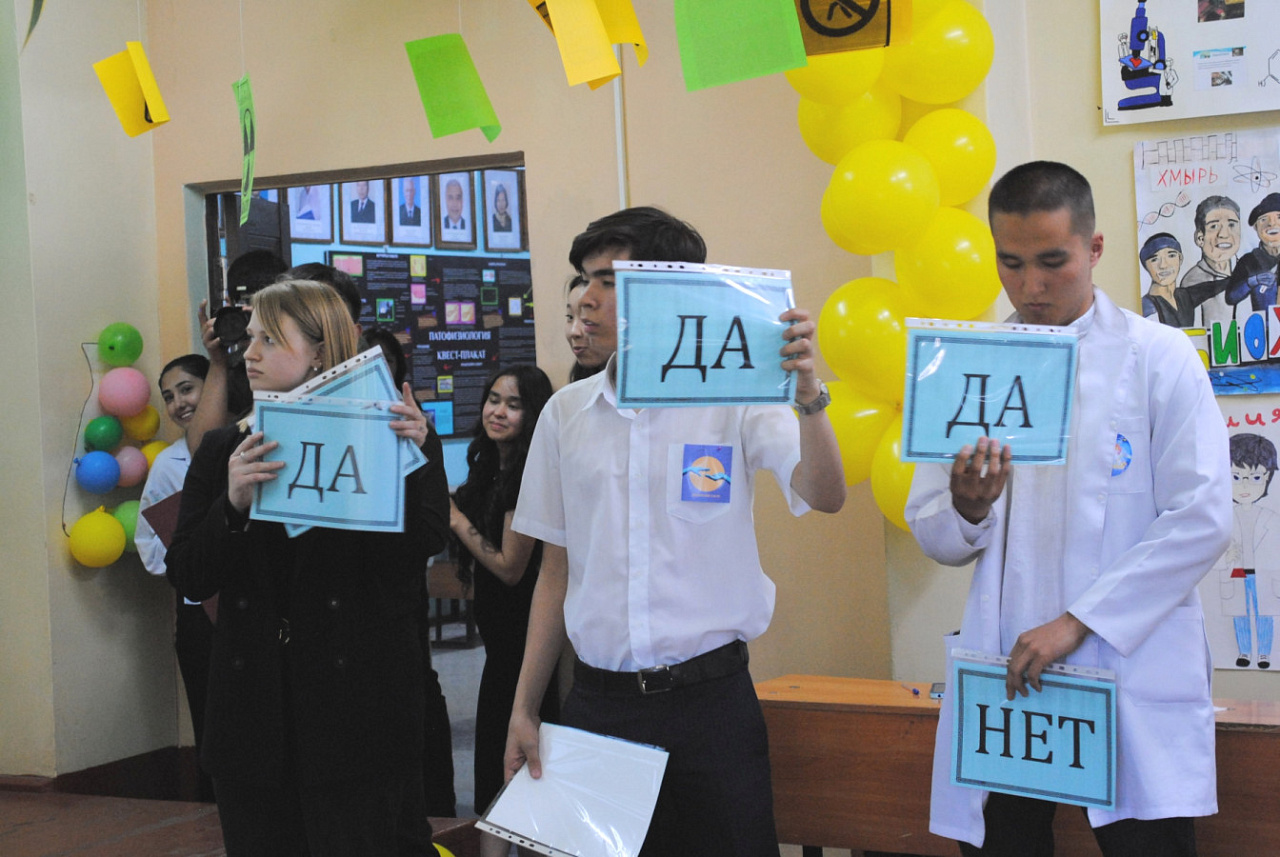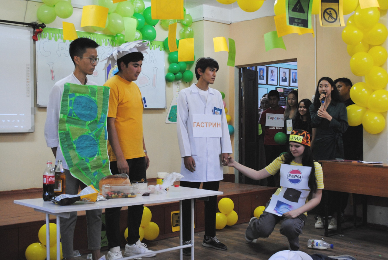 На кафедре химии и биохимии медицинского факультета состоялась студенческая олимпиада по биологической химии в формате традиционной встречи команд специальностей «Лечебное дело» и «Педиатрия» – «Клуба веселых и находчивых химиков». Соревнования приурочили к 30-летию Кыргызско-Российского Славянского университета и Дню химика, который отмечается 28 мая.