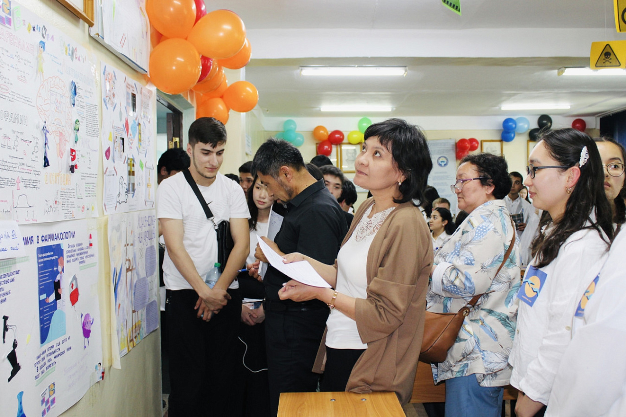 В состав жюри вошли декан медицинского факультета, доцент Р. Караева, зав. УМК факультета Ч. Нагойбаева, также были приглашены декан факультета биологии КНУ им. Ж. Баласагына, доцент Ш. Сулейманова, зав. кафедрой общей биологии, экологии и лабораторного дела, доцент Т. Токтосунов, доцент этой же кафедры А. Марасулов и старший научный сотрудник Института химии и фитотехнологий НАН КР Г. Камбарова.