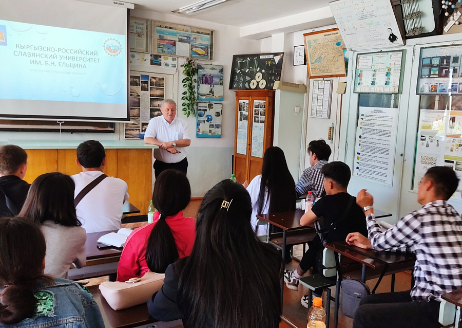 На встрече декан ЕТФ Герман Лоцев и преподаватели кафедры физики и микроэлектроники рассказали ребятам о нашем университете, по каким направлениям ведется подготовка на естественно-техническом факультете, об оснащении лабораторий и перспективах трудоустройства после окончания КРСУ.