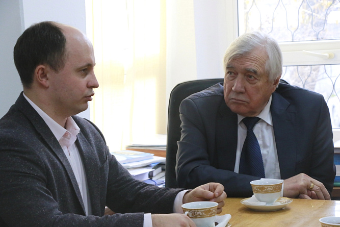Гостей тепло приняли ректор КРСУ, академик Владимир Нифадьев, проректор по учебной работе, профессор Салават Усманов и проректор по информации и связи с общественностью Леонид Сумароков.