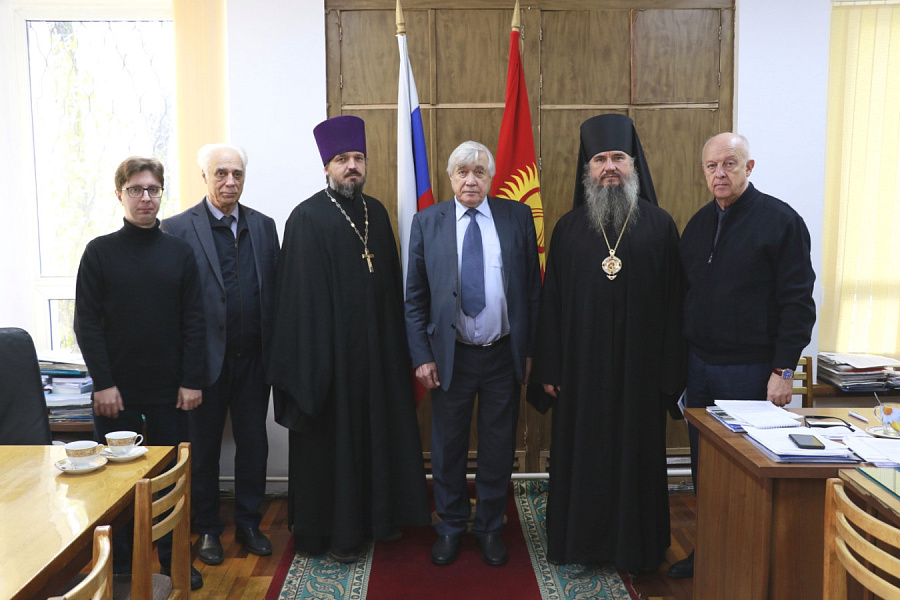 19 октября состоялась встреча епископа Савватия (Бишкекская и Кыргызстанская Епархия) с представителями Кыргызско-Российского Славянского университета – ректором, академиком Владимиром Нифадьевым, проректором по научной работе, профессором Валерием Лелевкиным, проректором по информации и связи с общественностью Леонидом Сумароковым и деканом ФМО, доцентом Алексеем Куликовским.