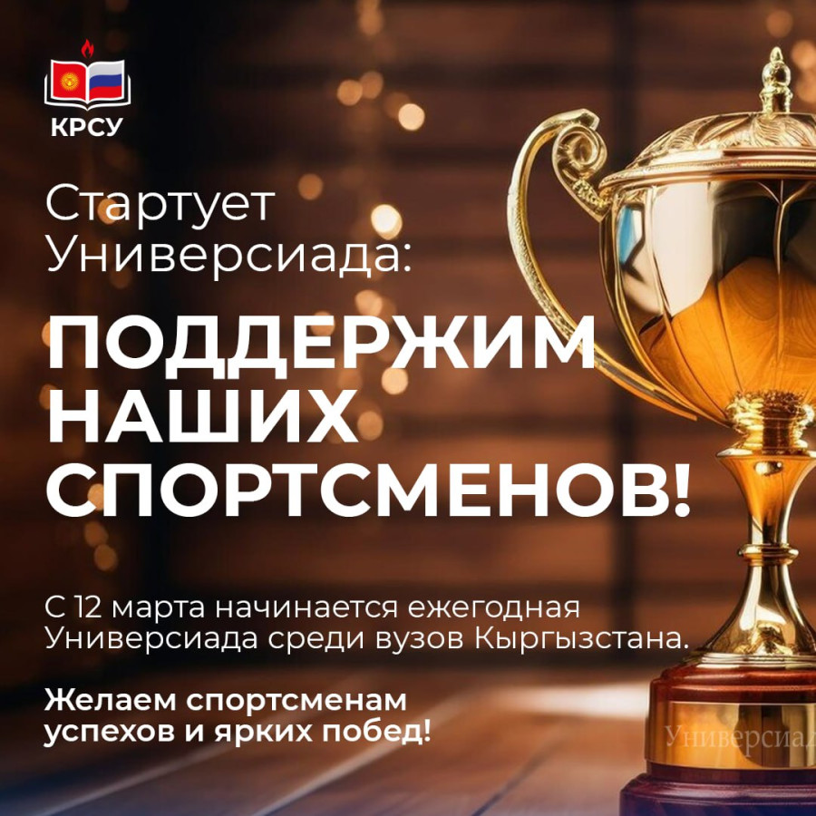 С 12 марта начинается ежегодная Универсиада среди вузов Кыргызстана, в которой примут участие студенты КРСУ. Соревнования пройдут в двух лигах – Высшей и Первой, а студенты будут бороться за медали в различных видах спорта.