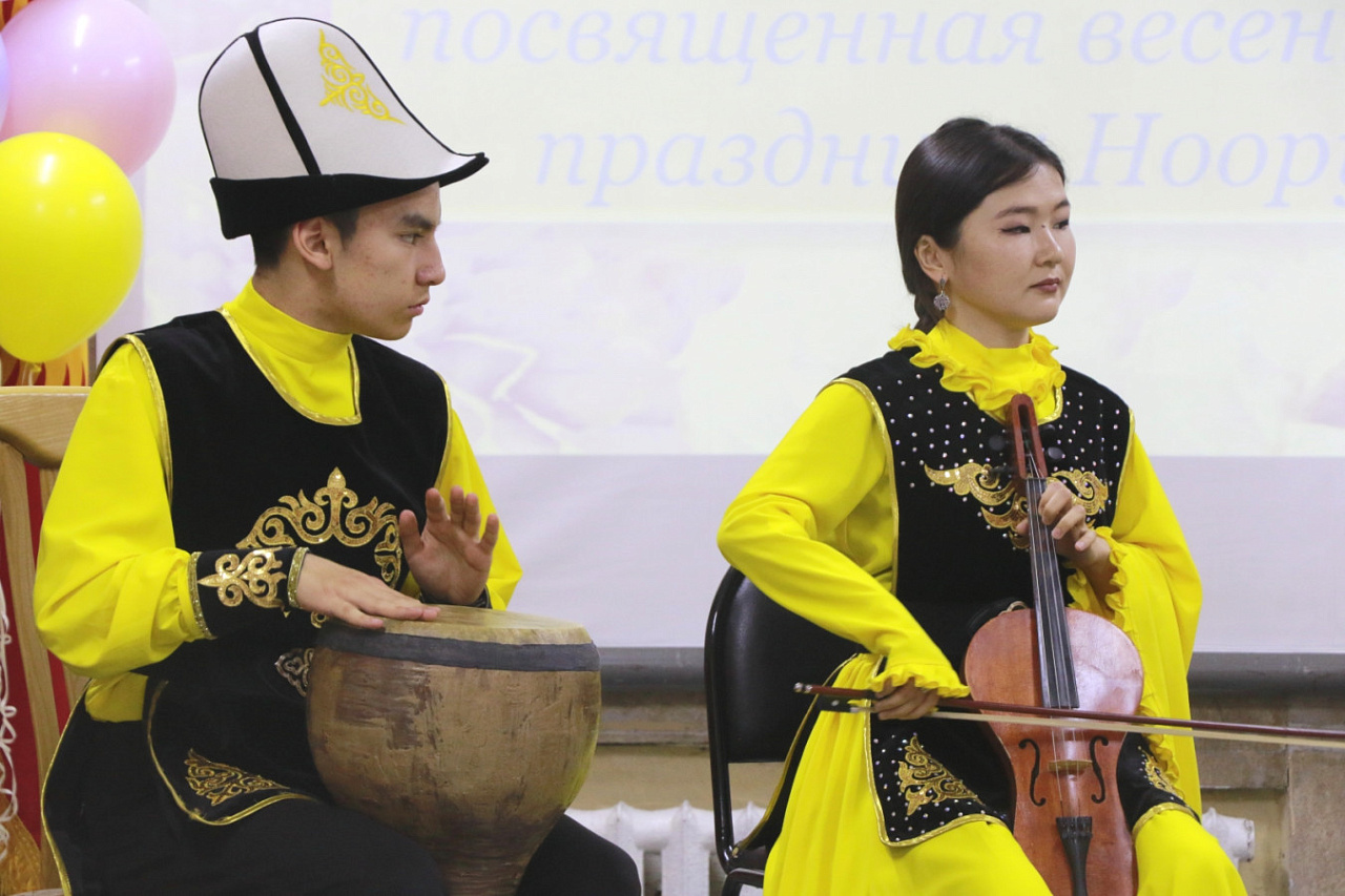 В рамках олимпиады студенты группы ЛД-7-17 подготовили 3 художественных номера – выступление комузистов и две песни в исполнении студента Омурбека Акматбекова.