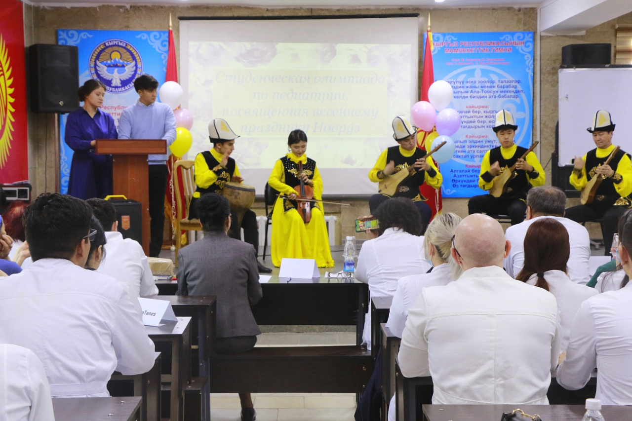 25 марта на базе Городской детской клинической больницы скорой медицинской помощи кафедра педиатрии КРСУ организовала олимпиаду среди студентов-лечебников 1 потока медицинского факультета. Всего в мероприятии, приуроченном к весеннему празднику Нооруз, приняли участие 9 групп, из которых сформировали 3 студенческие команды.