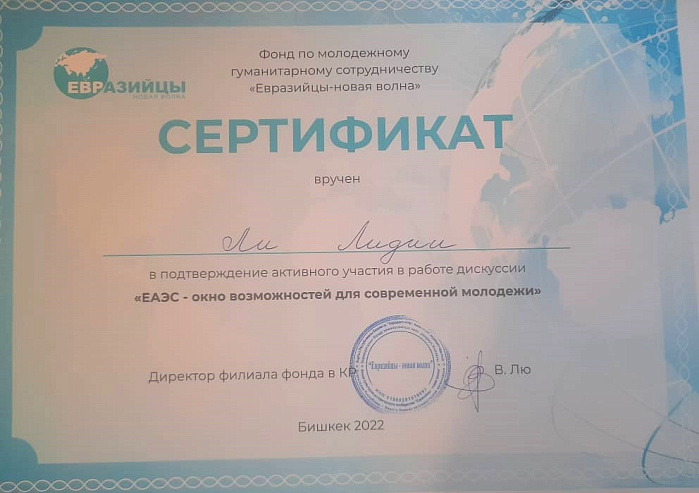 Студенты кафедры «Международные отношения» КРСУ приняли участие в молодежной дискуссии на тему «ЕАЭС – окно возможностей для современной молодежи», проведенной 16 февраля по инициативе Фонда «Евразийцы – новая волна».