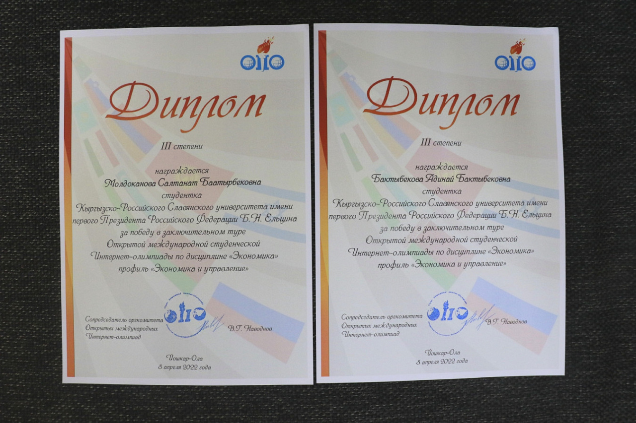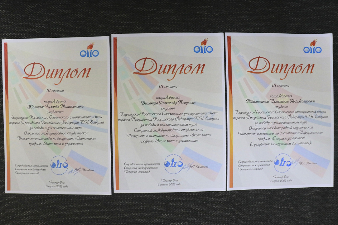 Студенты Кыргызско-Российского Славянского университета традиционно заняли призовые места в Открытой международной Интернет-олимпиаде по информатике и экономике, которую ежегодно проводит Национальный фонд поддержки инноваций в сфере образования (Йошкар-Ола).