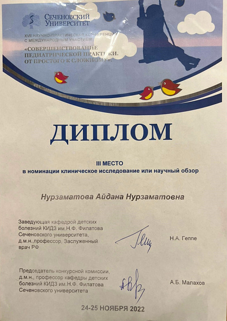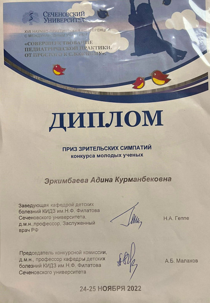 В те же дни состоялся VII Московский городской съезд педиатров с международным участием, на котором доклад студента-педиатра 6 курса медицинского факультета КРСУ Дмитрия Буша прошел в финал и занял 2 место!