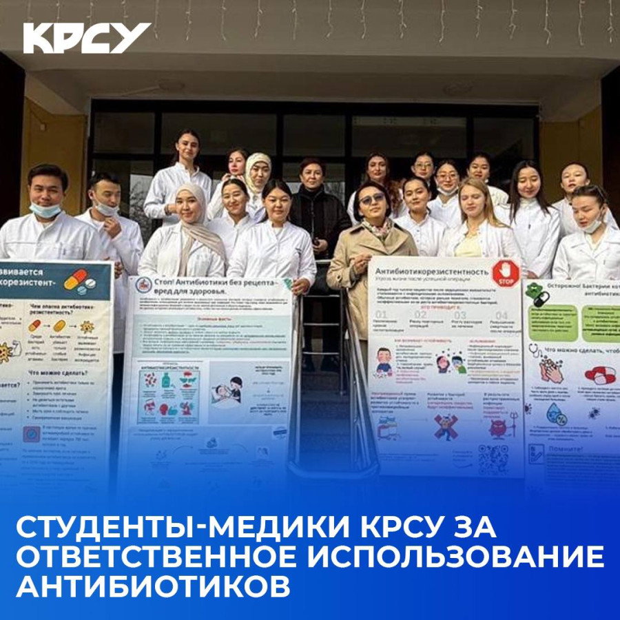 18–19 ноября кафедра базисной и клинической фармакологии КРСУ провела информационную кампанию, посвящённую Всемирной неделе осведомлённости о противомикробной резистентности. Инициатива прошла в рамках студенческой конференции «Проблемы антибиотикорезистентности и меры по её сдерживанию» с участием студентов 5 курса.