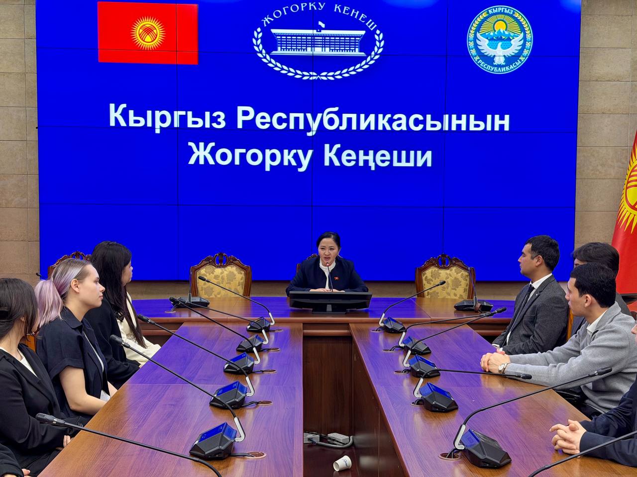 Юридический факультет Жогорку Кенеш: Студенты юридического факультета КРСУ посетили Жогорку Кенеш и встретились с депутатом Гульнарой Акимбаевой