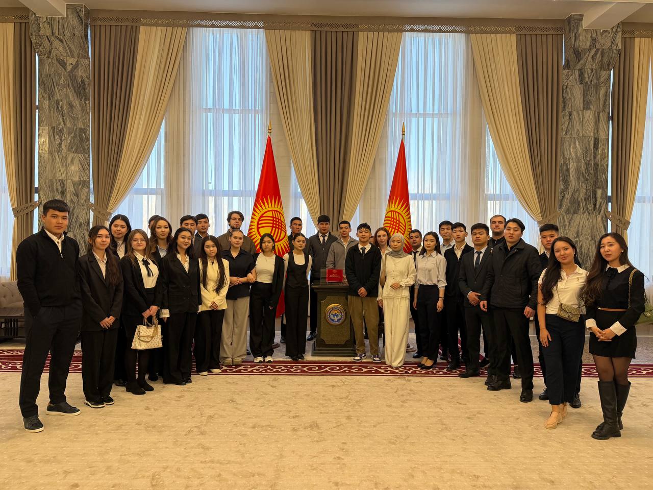Студенты юридического факультета по приглашению депутата Гульнары Акимбаевой посетили Жогорку Кенеш Кыргызской Республики с обзорной экскурсией, в рамках которой прослушали лекцию, посвящённую конституционному строю Кыргызской Республики.