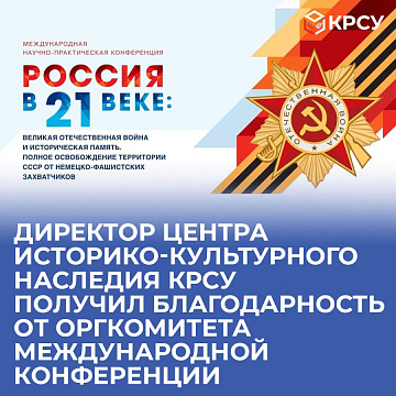 Директор Центра историко-культурного наследия КРСУ получил благодарность от оргкомитета международной конференции 11 ноября 2024 Награды