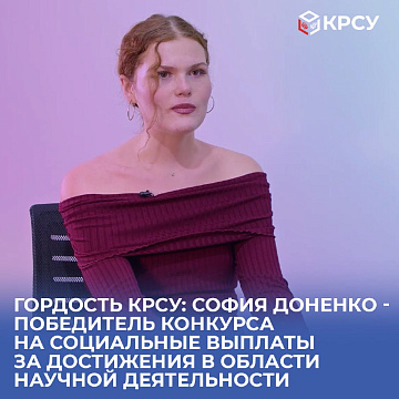 Гордость КРСУ : София Доненко - -победитель конкурса на социальные выплаты за достижения в области научной деятельности 15 января 2025 гордимся