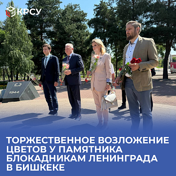 Визит делегации СПбГЭУ в КРСУ: Торжественное возложение цветов у памятника блокадникам Ленинграда в Бишкеке 10 июля 2024 Встречи
