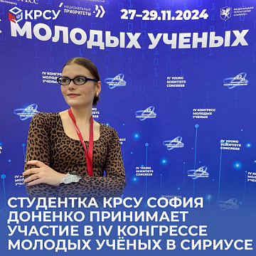 Студентка КРСУ София Доненко принимает участие в IV Конгрессе молодых учёных в Сириусе 28 ноября 2024 Студенты