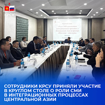 Сотрудники КРСУ приняли участие в круглом столе о роли СМИ в интеграционных процессах Центральной Азии 5 ноября 2025 Круглый стол