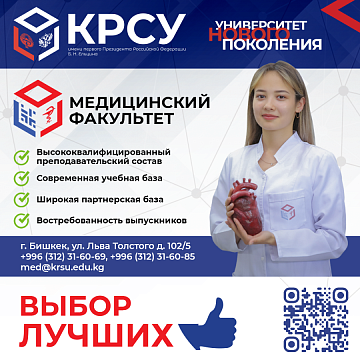Добро пожаловать на Медицинский факультет Кыргызско-Российского Славянского университета 20 июня 2024 Абитуриенту