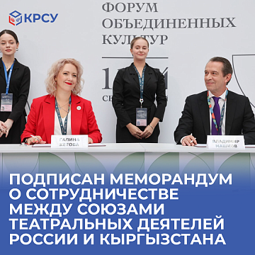 Подписан меморандум о сотрудничестве между Союзами театральных деятелей России и Кыргызстана 13 сентября 2024 Университет