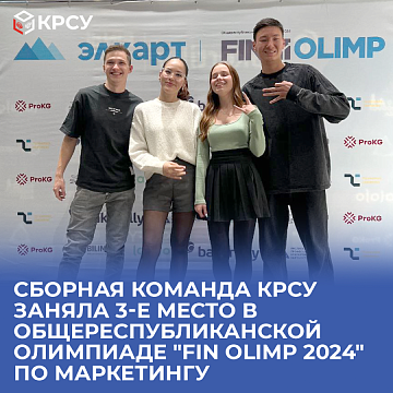 Сборная команда КРСУ заняла 3-е место в Общереспубликанской Олимпиаде "Fin Olimp 2024" по маркетингу 21 октября 2024 Студенты