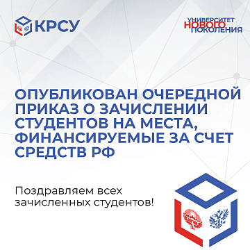 В КРСУ опубликован очередной приказ о зачислении студентов на места, финансируемые за счет средств Российской Федерации 20 августа 2024 Приказ