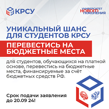 Уникальный шанс для студентов КРСУ перевестись на бюджетные места, финансируемые Российской Федерацией 17 сентября 2024 Студентам