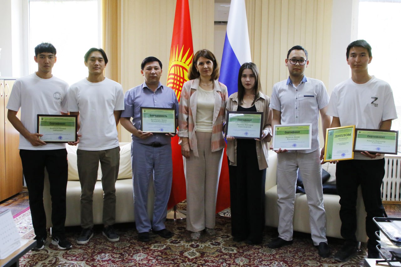 Проректор по образовательной деятельности Кыргызско-Российского Славянского университета (КРСУ) Елена Девятова провела встречу с участниками XIV Международной экологической олимпиады для вузов стран СНГ. В составе команды КРСУ — магистрант первого курса Акматов Дамир и студенты третьего курса Лагунова Виктория, Аманов Нуртенир, Бообеков Бекжан и Кулекбаев Мирбек. Руководителем команды выступил заведующий кафедрой экологии и защиты в чрезвычайных ситуациях, кандидат технических наук, доцент Эрик Мамбетов.