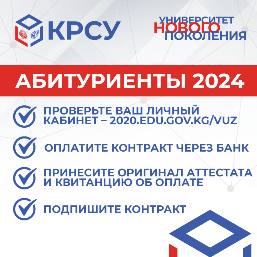 Для поступающих в колледж: При оплате за обучение, обязательно указать Ф.И.О. (полностью), Колледж КРСУ, специализация.